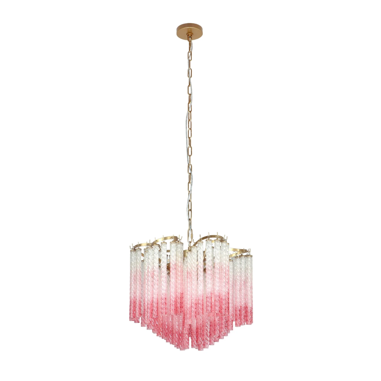 Inspired by the timeless elegance of Murano Glass lighting, the Ananya Ombre Glass Chandelier brings a touch of magic to your space without the delicate fragility. The stunning Ananya features beautiful ombre pink hues that infuse a burst of color, while the twisted rods add a mesmerizing glimmer to any room. Affordably priced, this grand and feminine chandelier is the perfect addition to elevate the ambiance of any space.
