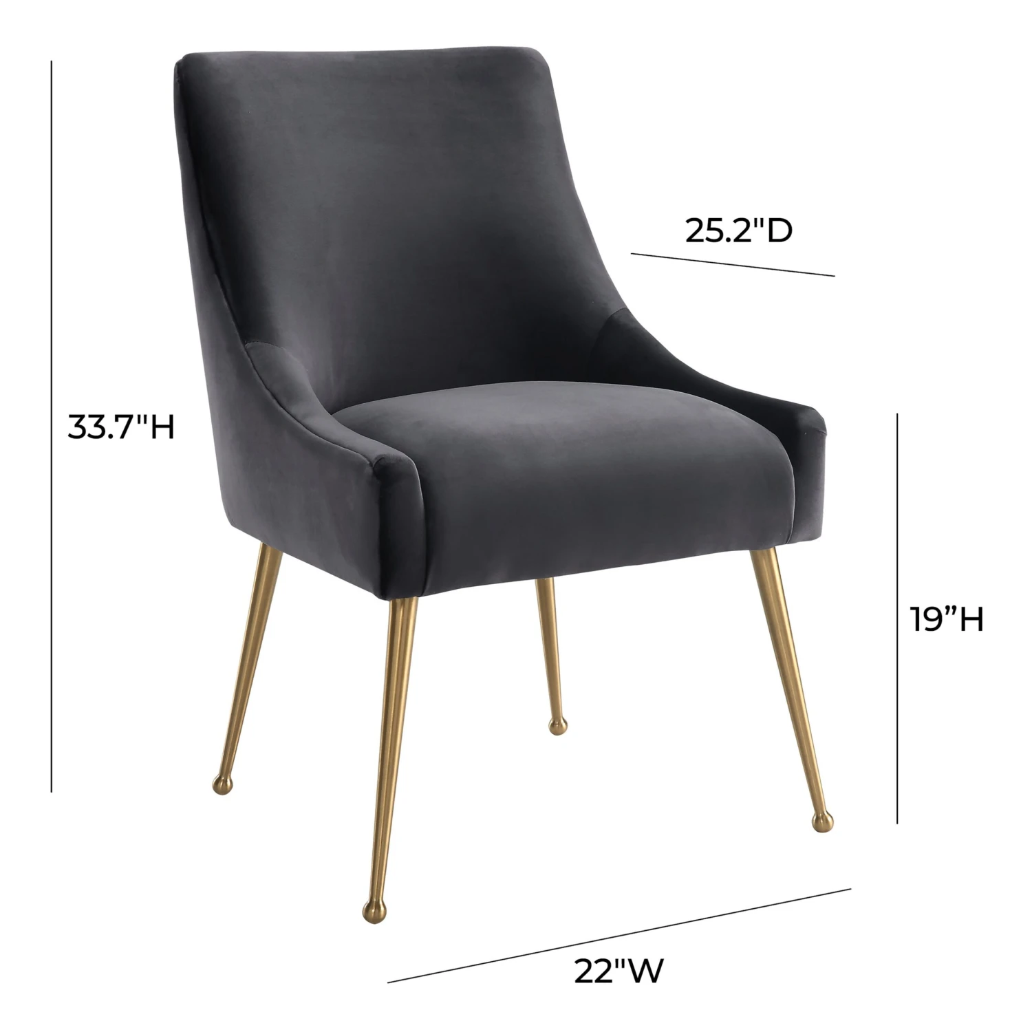 Sit pretty in this sumptuous yet durable velvet chair. The Beatrix dazzles as a dining chair or as an accent piece. Available in several colors with fab gold stainless steel legs and a matching handle on the back. Prop it into any room for a luxe, glamour effect.