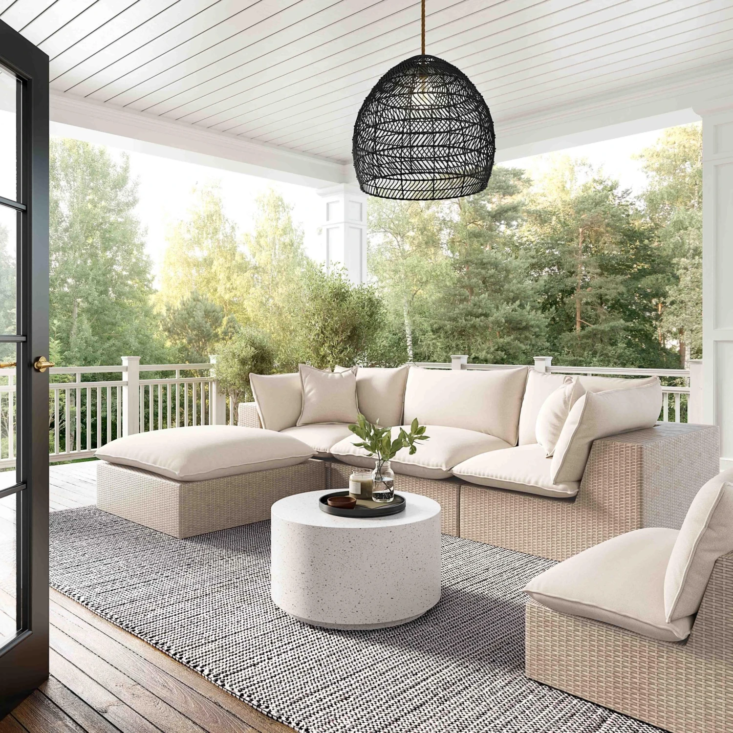 Our Cali Collection wows again with the spectacular Cali Outdoor Collection. Crafted from a neutral faux wicker, this weather-resistant collection will elevate your outdoor living space. Upholstered in outdoor-friendly material, the comfort of this collection is hard to resist.