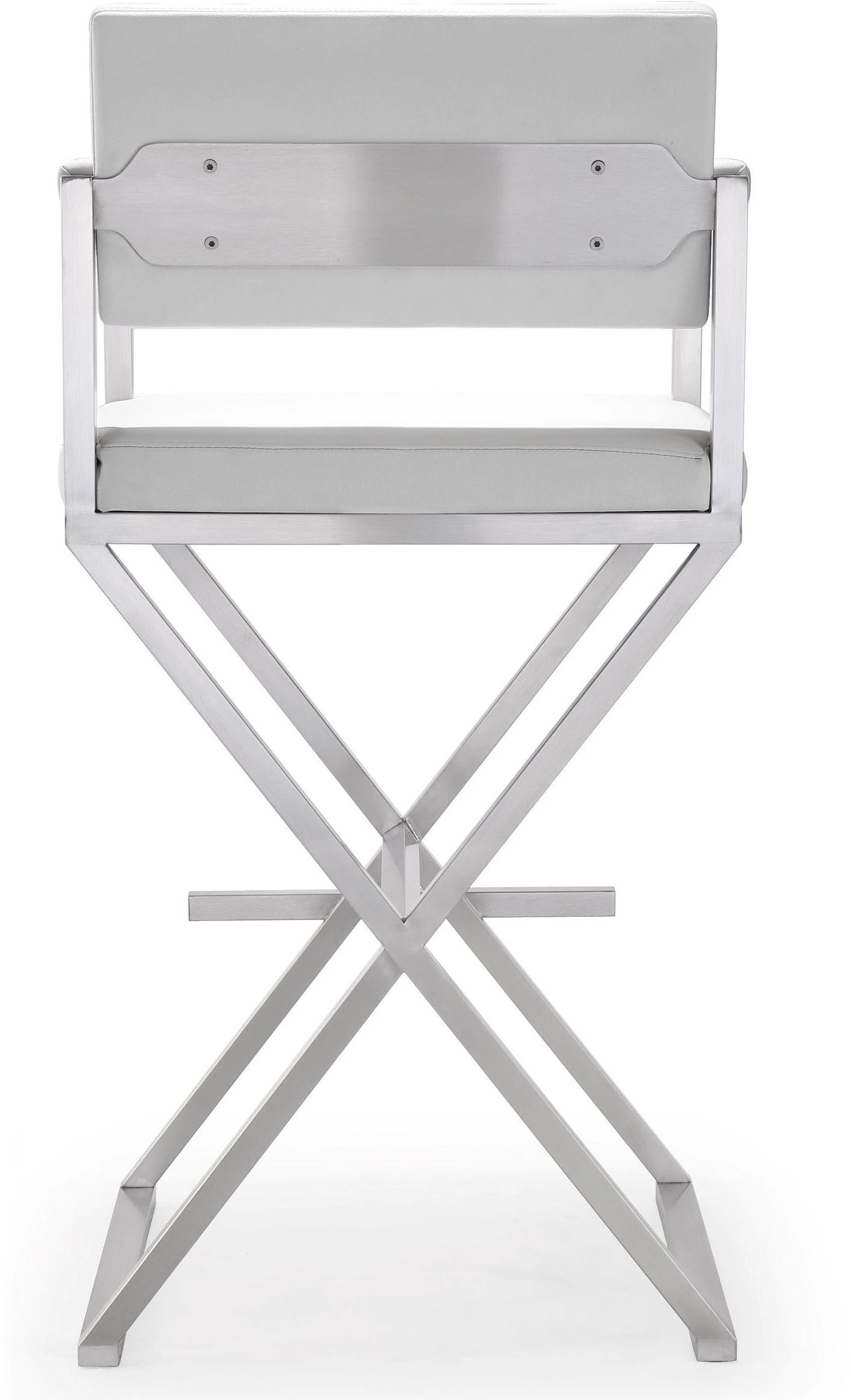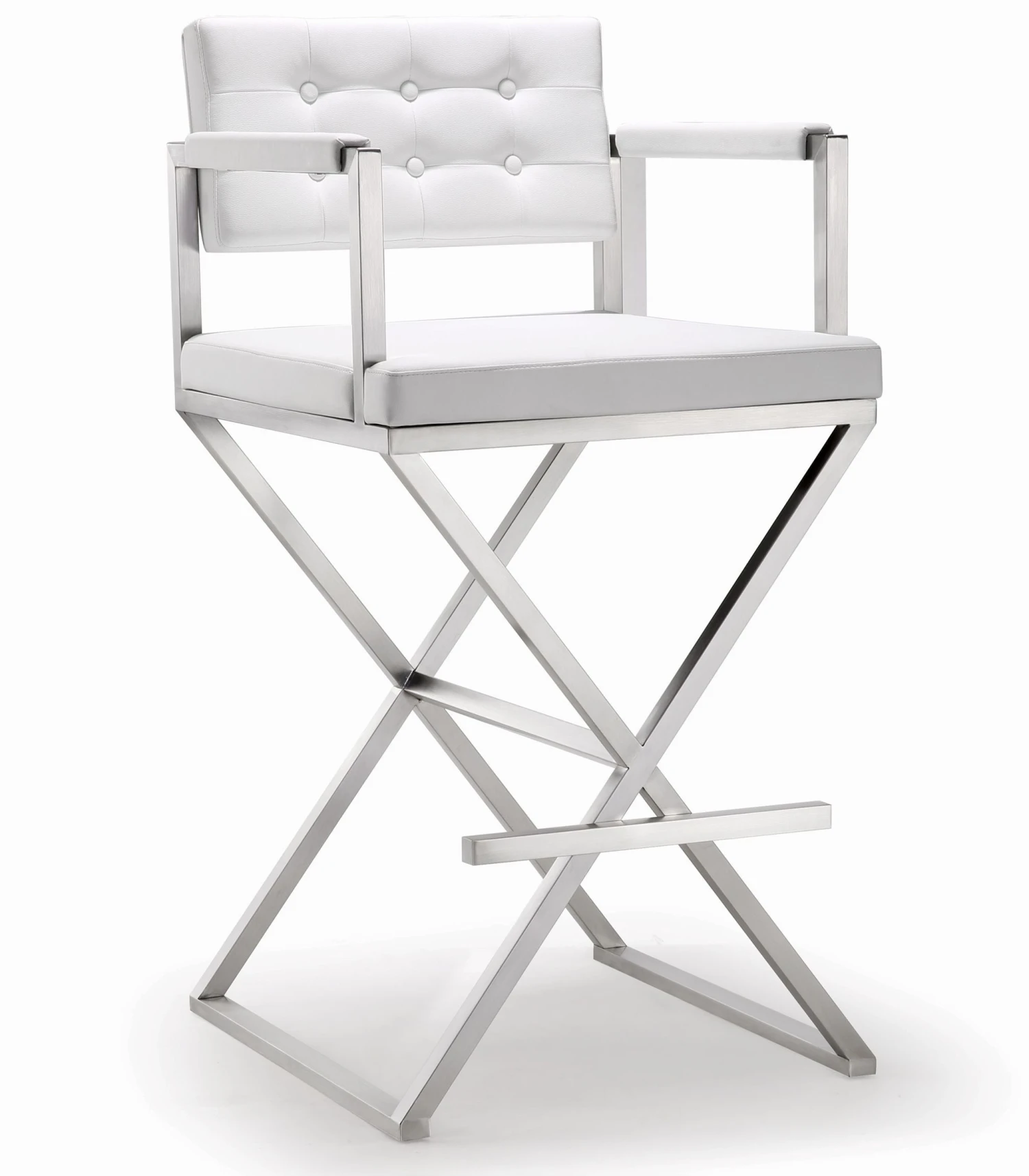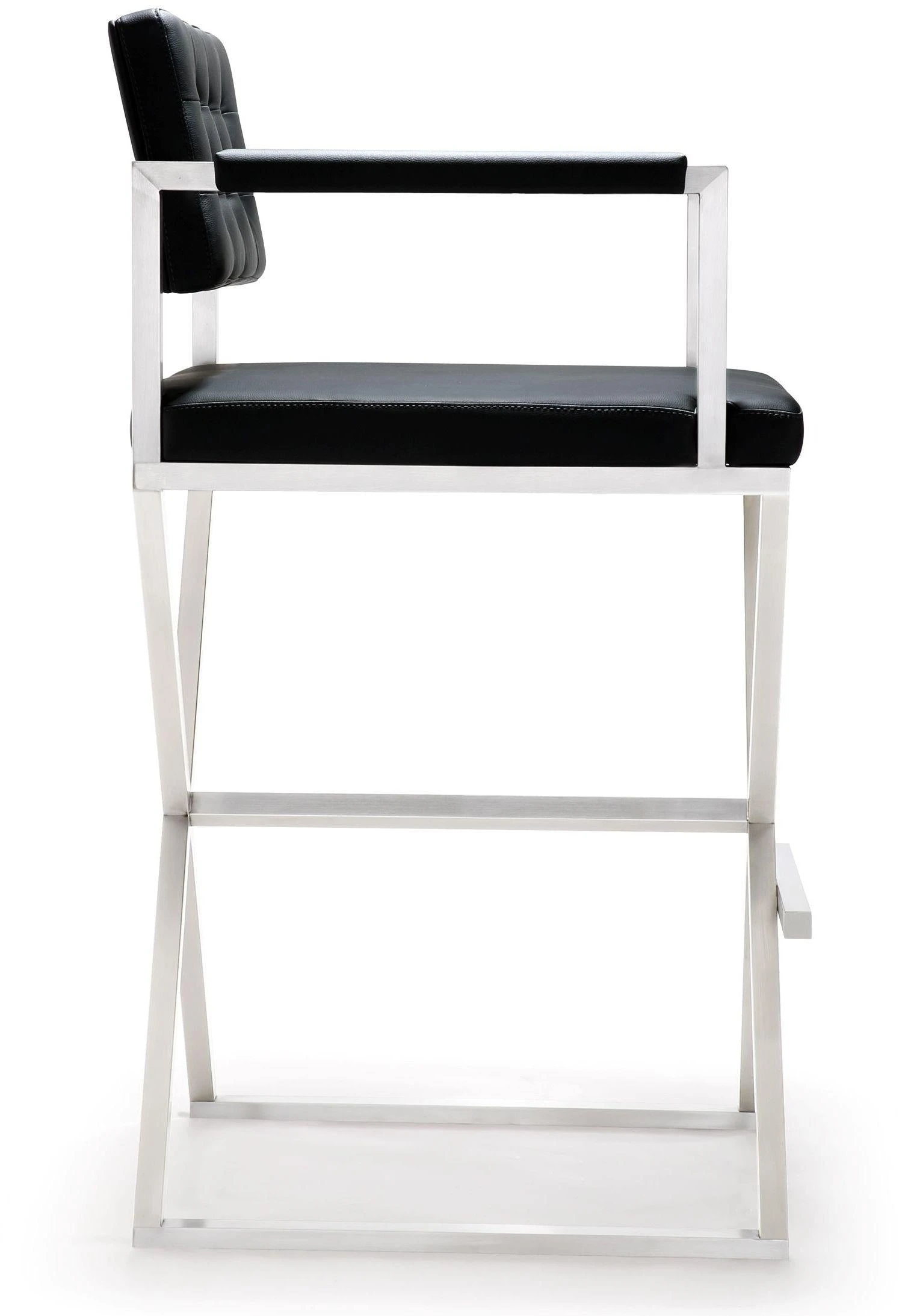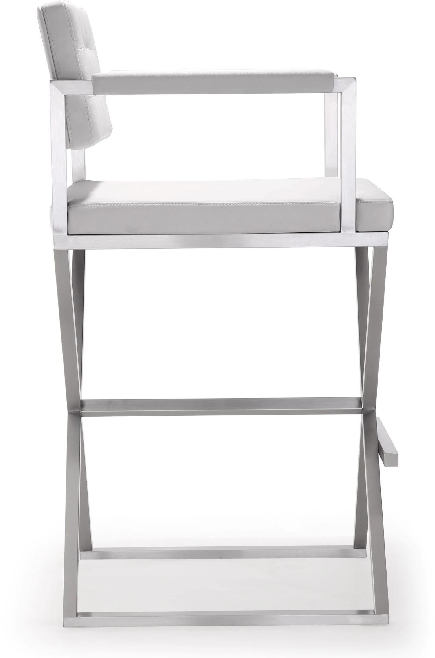 Furnish your kitchen or bar area in contemporary style with the Director stool from TOV. The solid stainless steel frame provides a sturdy base, while the plush extra deep seat and footrest ensure maximum comfort. The combination of angles and gentle curves gives this stool an eye-catching appearance, while the neutral color allows it to match well with any decor.
