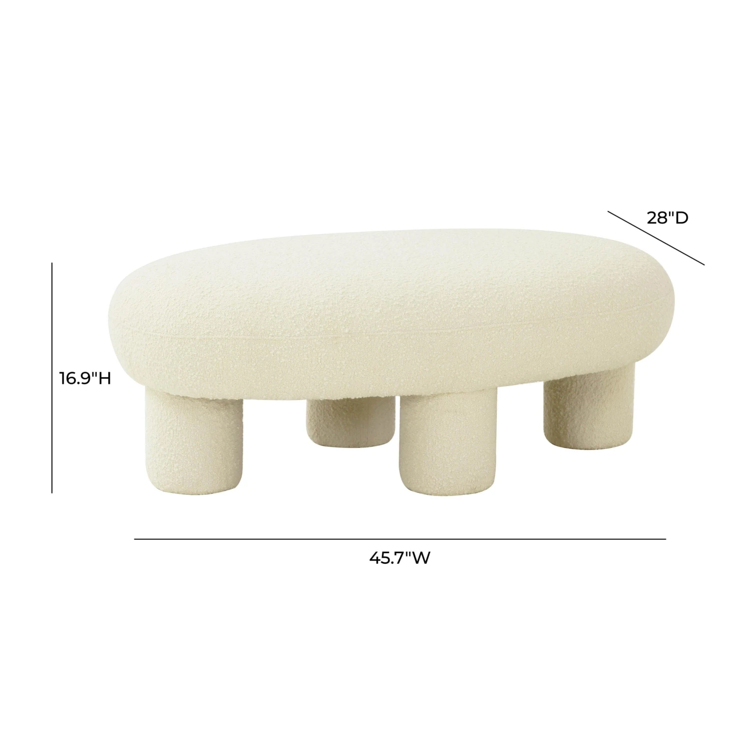Trendy and chic, this ottoman is all the rage! This stylish piece features a fully upholstered kiln-dried pine frame and is perfect to use as a footrest, coffee table or an extra seat. Complement your living room with this one of a kind cozy textured boucle ottoman.