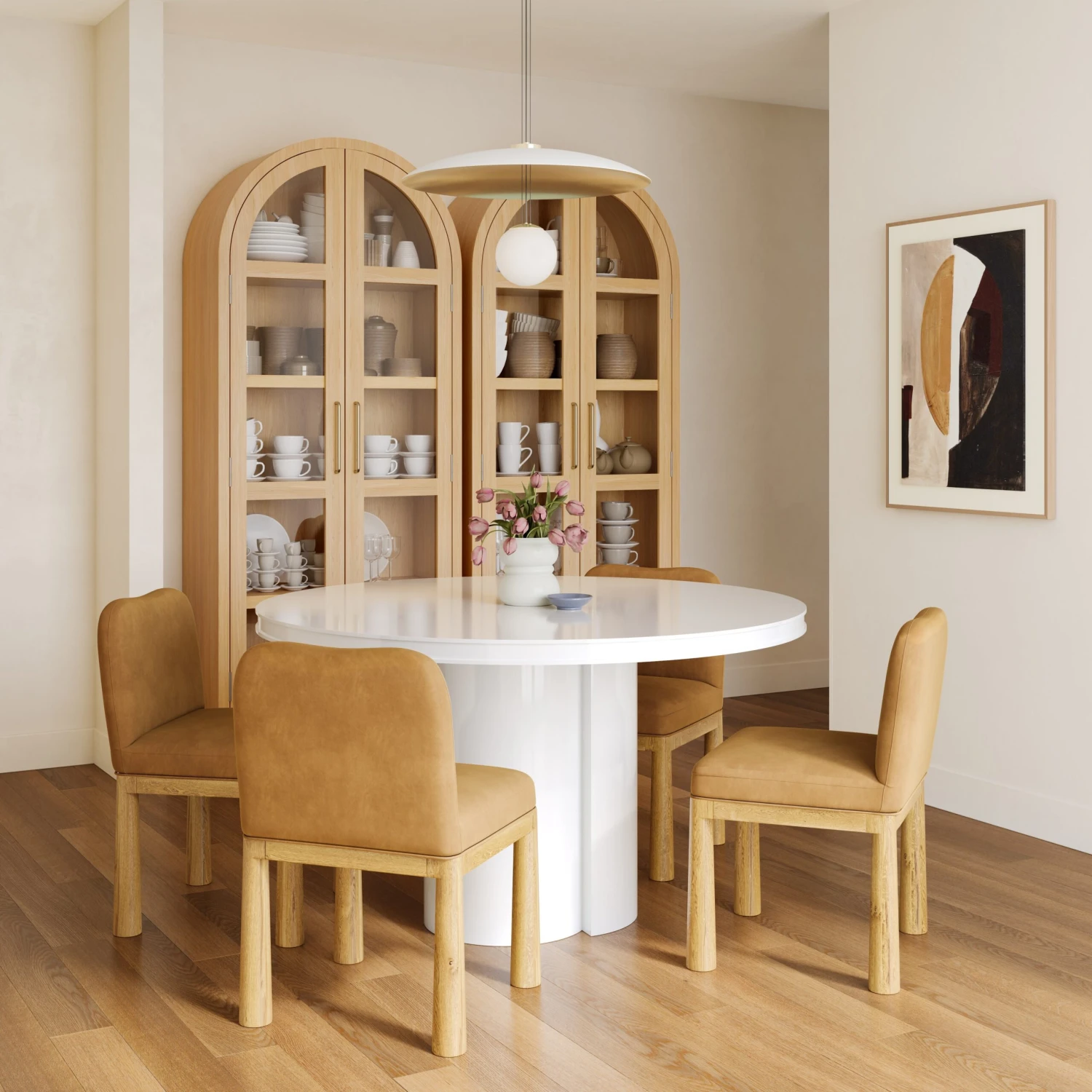 The Elora Lacquer Oval Dining Table is a stunning centerpiece for modern dining spaces, featuring a sleek lacquer finish and an architecturally inspired structural base. Available in crisp white or bold blue, this table makes a sophisticated statement while offering ample space for gatherings with its expansive oval top. Designed to blend form and function seamlessly, the Elora Oval Table is perfect for those who appreciate contemporary style with a touch of elegance. For added versatility, the Elora is also available in a round version, allowing you to choose the ideal shape for your space.
