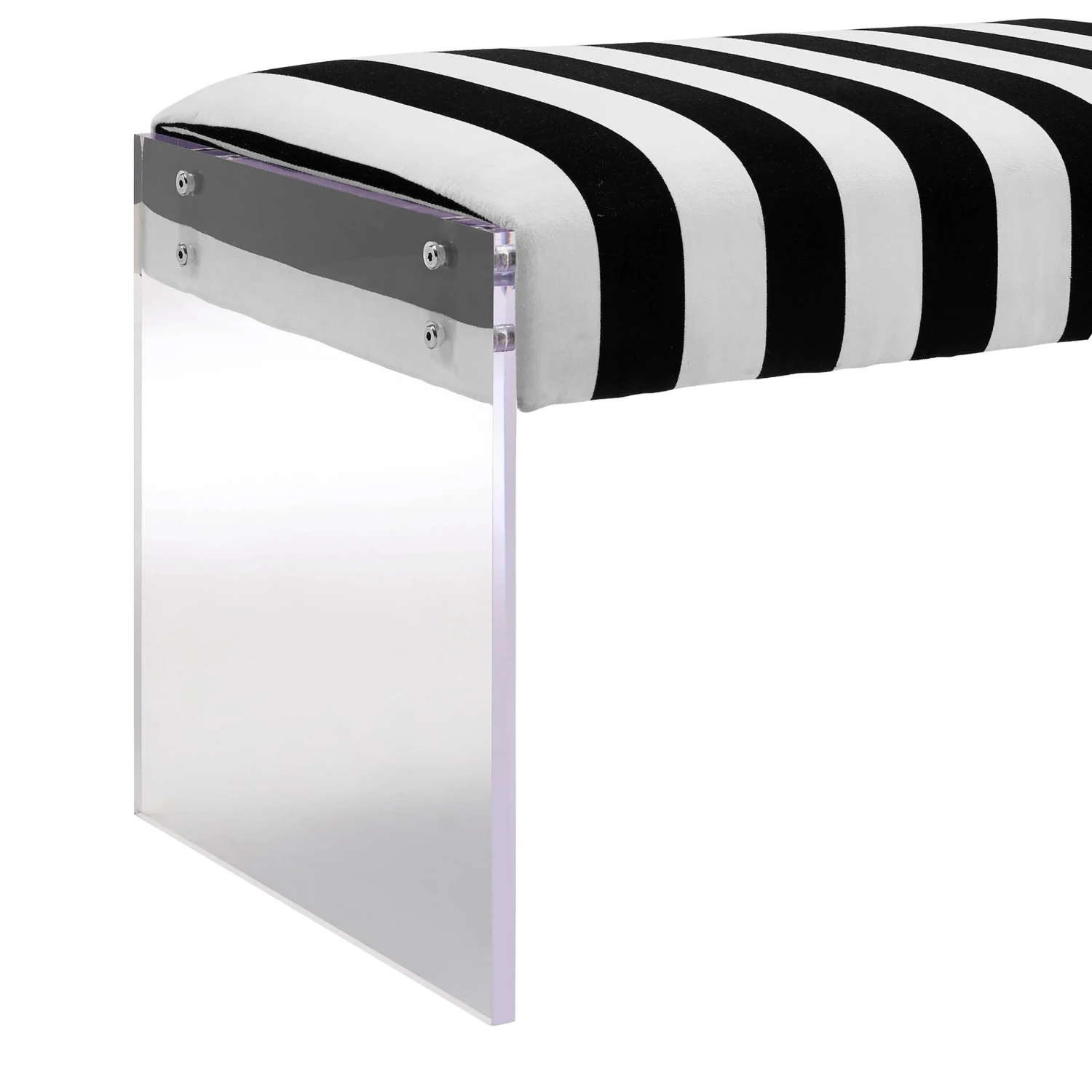 The Envy Bench exudes modern design and appeal. The clear acrylic legs offer a dramatic look to the simple shape, while the plush seat is upholstered in a soft velvet fabric. This is a must have if you are looking to add eye catching style to any space.