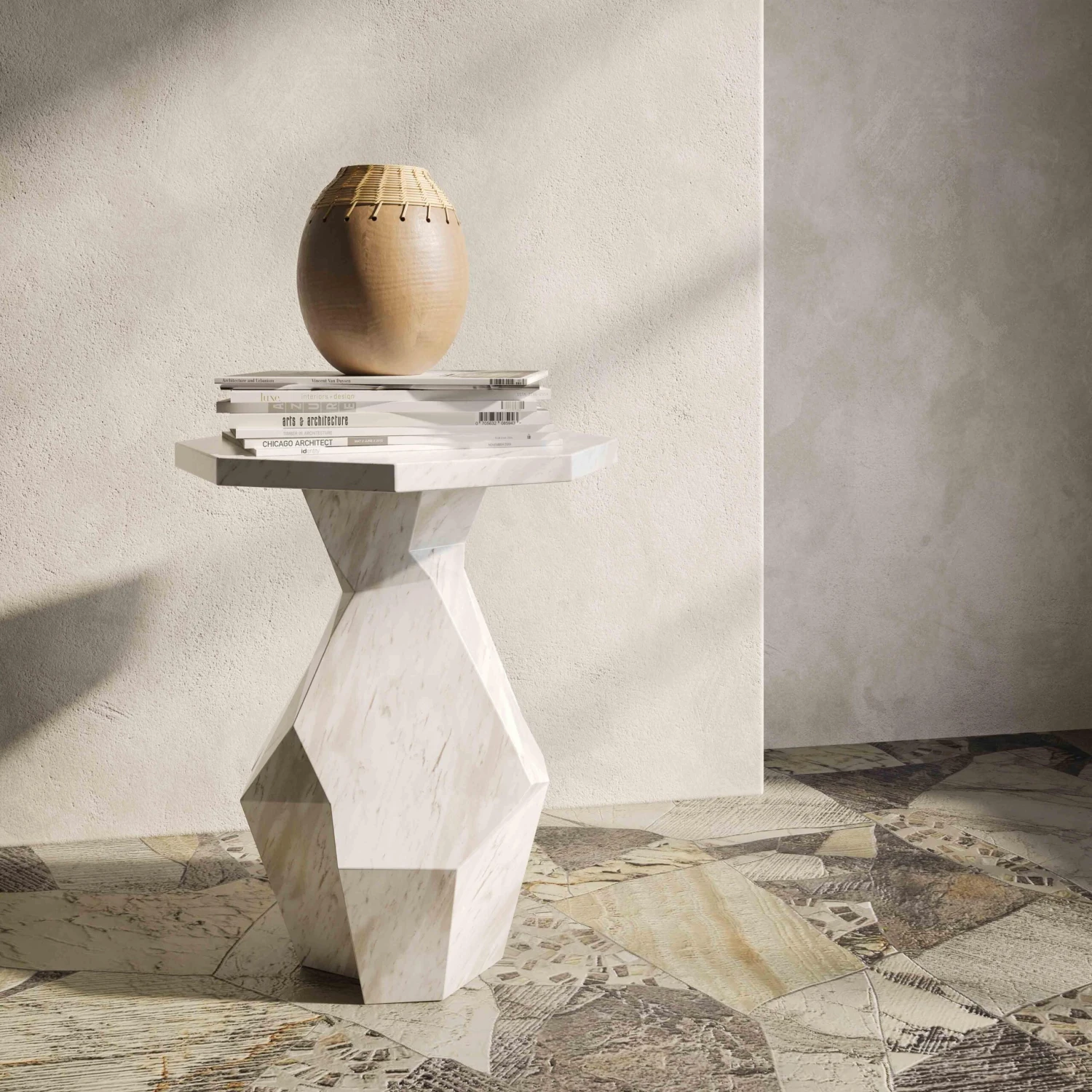 The Esme Faux Marble Table Collection features striking silhouettes that mimic the look of chiseled marble, bringing bold design to any space. With a side table, console, and 48″ round dining table to choose from, these versatile pieces are perfect for both indoor and outdoor settings.