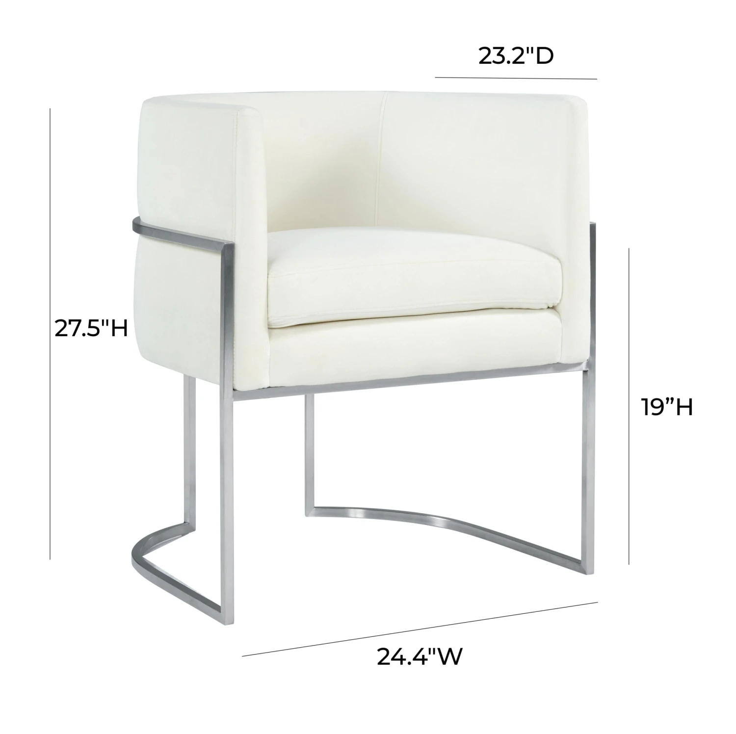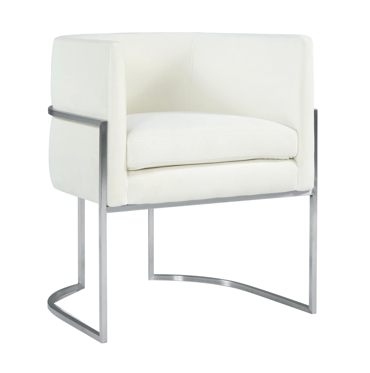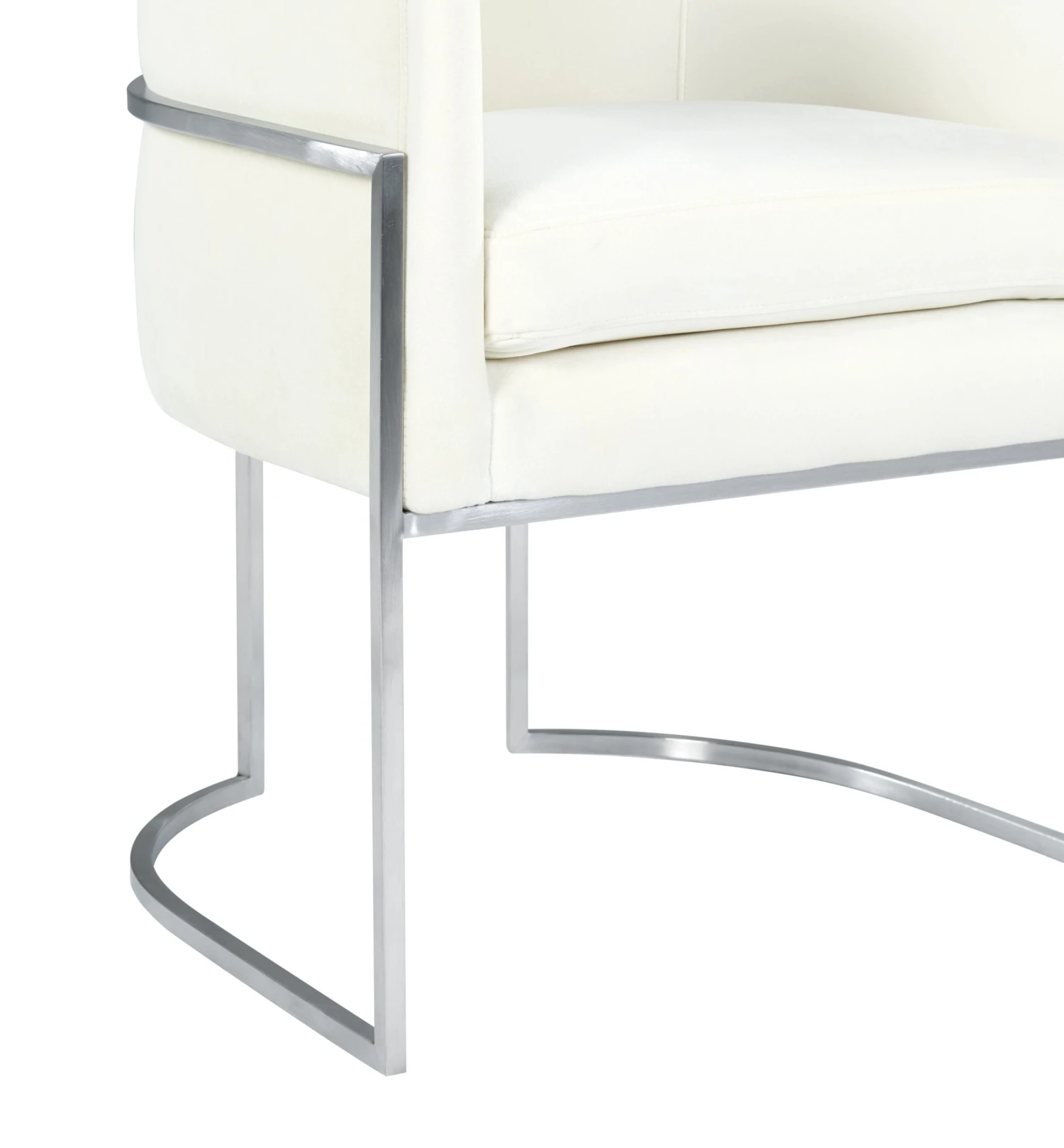 Fabulously chic and demanding attention, the Giselle dining chair dazzles from any angle. Designed in collaboration by Inspire Me Home Decor and TOV, it boasts a rich velvet upholstery supported by a stainless steel frame, making it both stylish and comfortable.