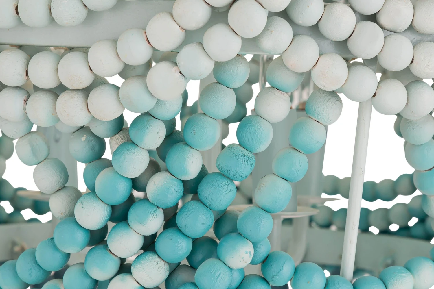 Dress your room with this unique take on the classic chandelier. Crafted of iron and with natural wrapped details and cascading rows of ombre beads, the Jade chandelier is sure to elements of texture and Bohemian style to your space.