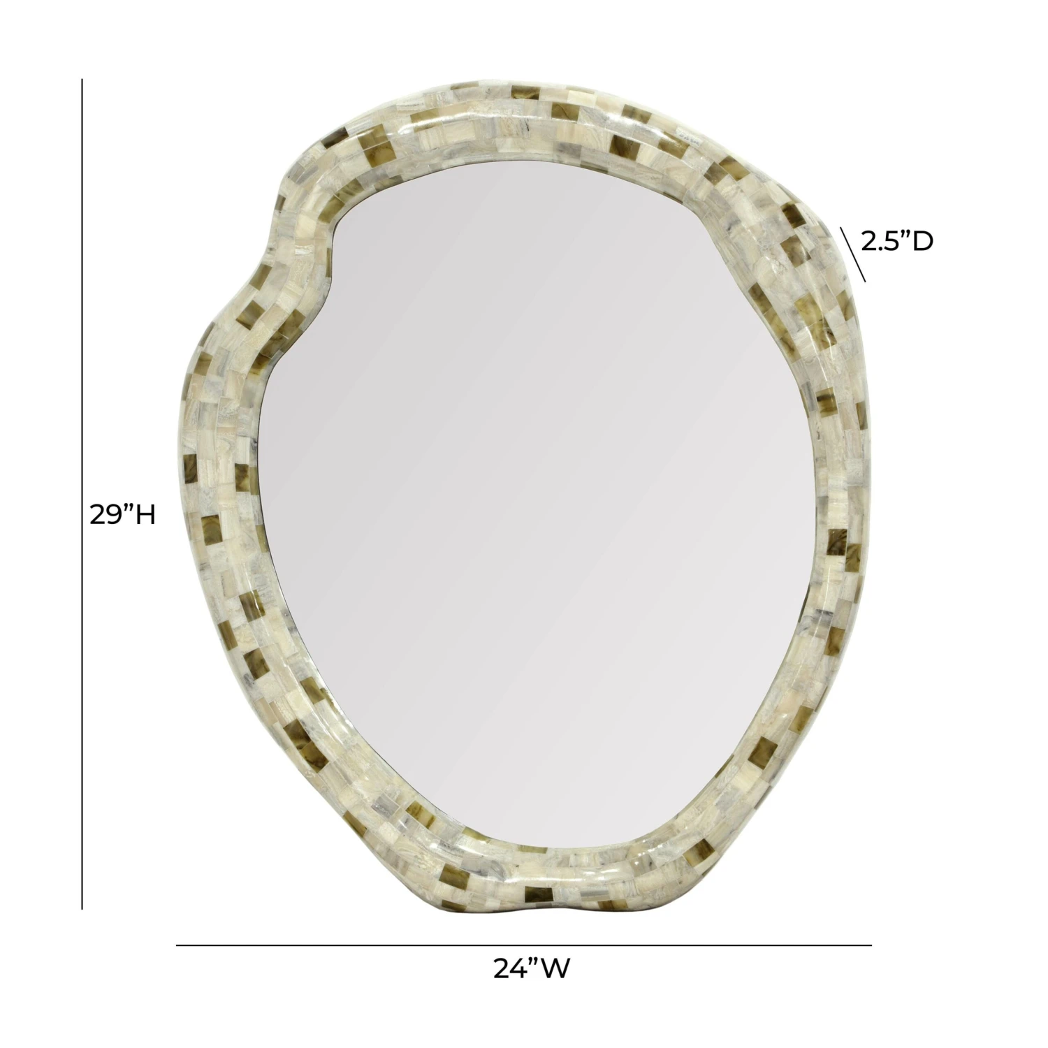 The Josephine Wall Mirror is one enchanting show-stopper. Crafted with a mesmerizing combination of glass and resin, its sculptural irregular shape brings a captivating touch to your space. With a seashell effect that glistens delicately, this mirror becomes a whimsical centerpiece that exudes elegance and artistic charm.