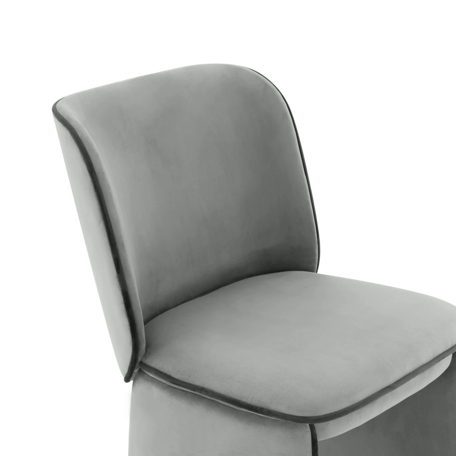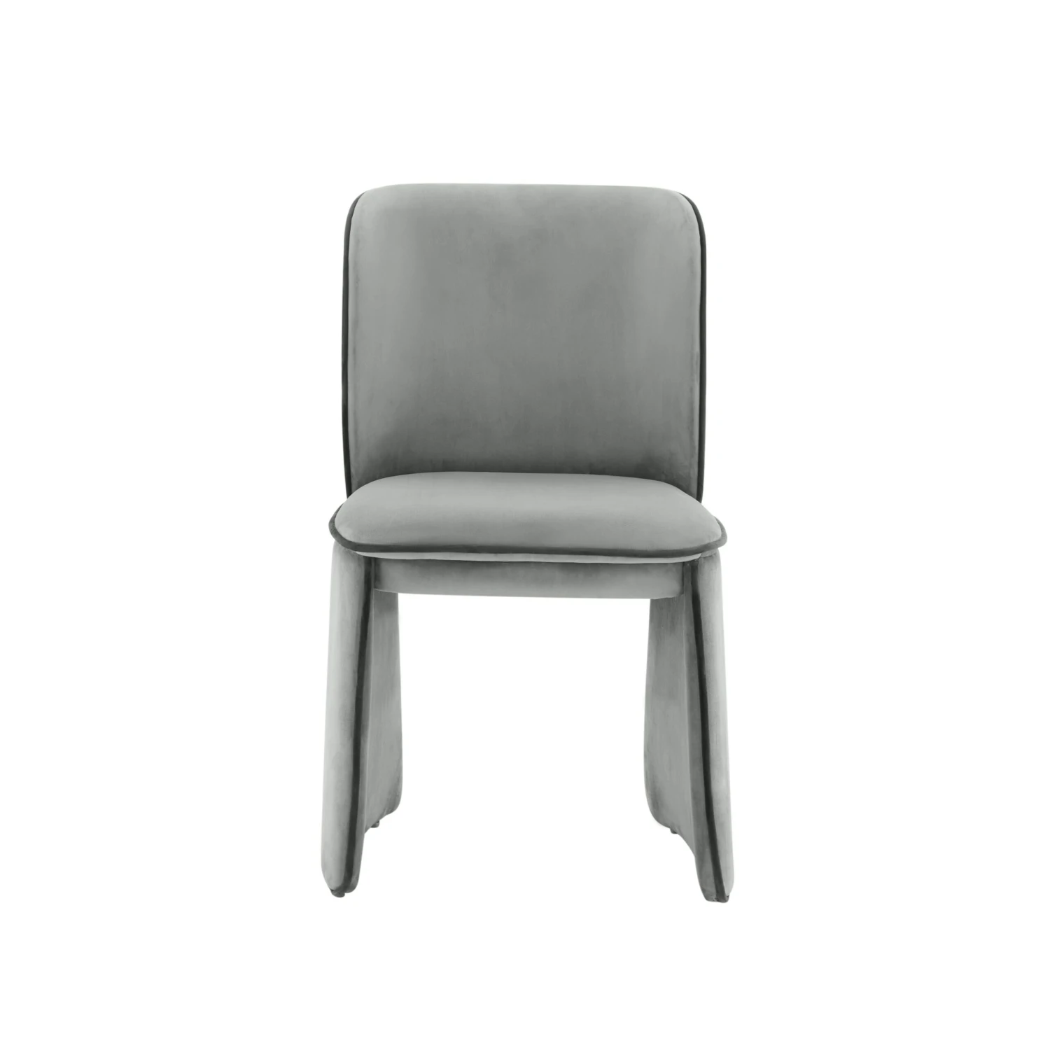 The Kinsley chair is a piece that adds a dramatic flare to minimalistic chic. Upholstered in sumptuous velvet fabric and supported by a sturdy wood frame, this chair will transform your dining experience with its tasteful craftsmanship and lavishly sculptural design.