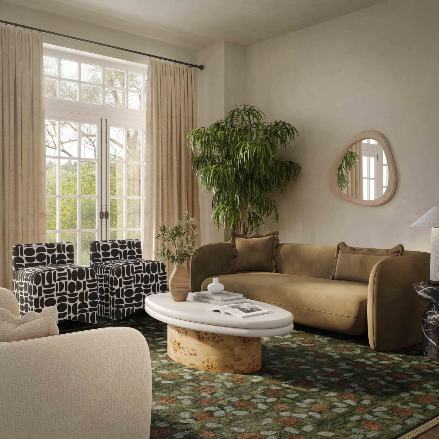 The Klaryss Natural Wood Triangular Mirror embraces the current craze for amorphous natural sculpted aesthetics, making it a must-have statement piece. Available with a natural wood or boucle upholstered frame, this mirror pairs perfectly with a touch of avant-garde flair. Add to the mix the textured, nubby boucle fabric or natural wood, and you’ve got a mirror that not only reflects but sets a super trendy tone in any space.