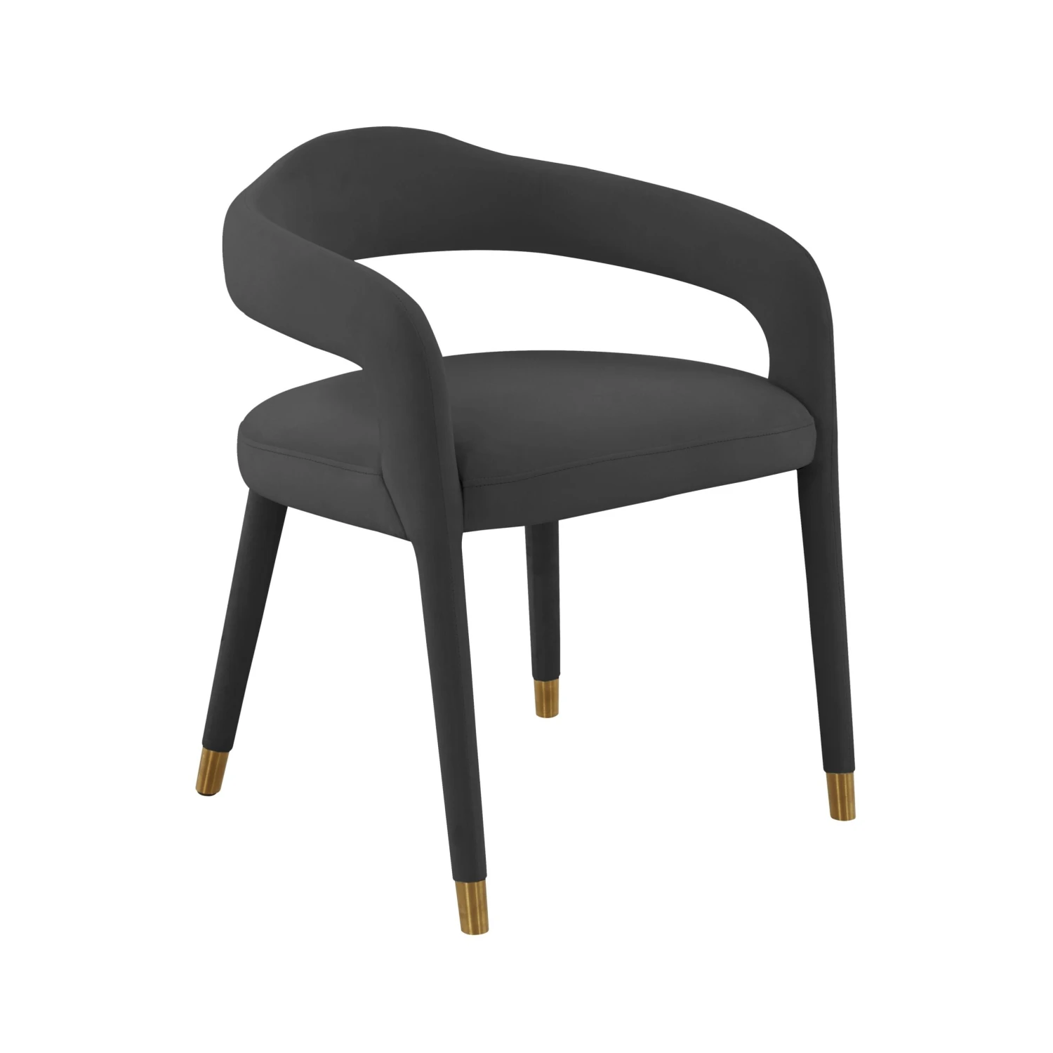 Your dining room can become a work of art with the Lucia Chair. Featuring a beautifully sleek velvet fabric, tastefully curved back and arms, and elegant gold tipped legs; this chair is sure to elevate any dining experience!