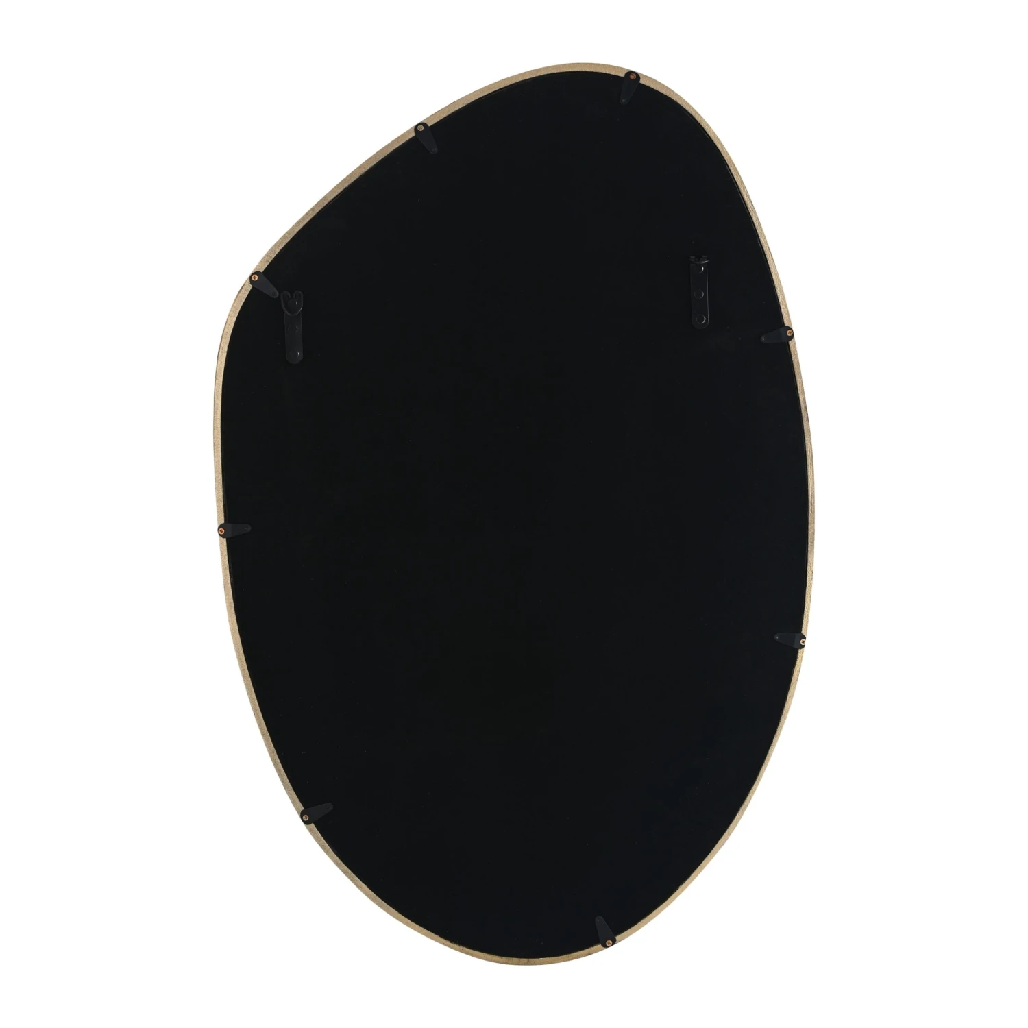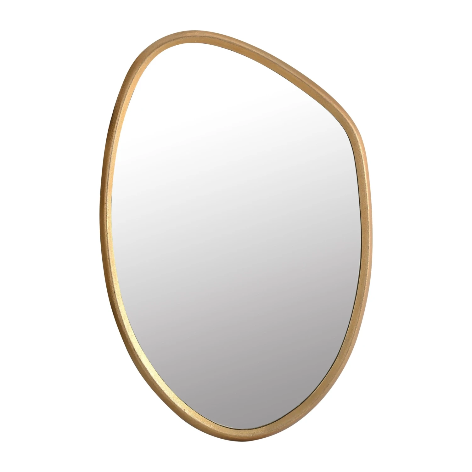 Discover the Mika Gold Wall Mirror, a masterpiece of craftsmanship and design meticulously hand-cast in sand molds from solid aluminum. This mirror stands out with its irregular, trendy shape, bringing a touch of avant-garde elegance to any room or space. Its distinctive triangular cross-section frame adds depth and dimension to its appearance, making it not just a mirror but a statement piece that reflects both your style and your space.