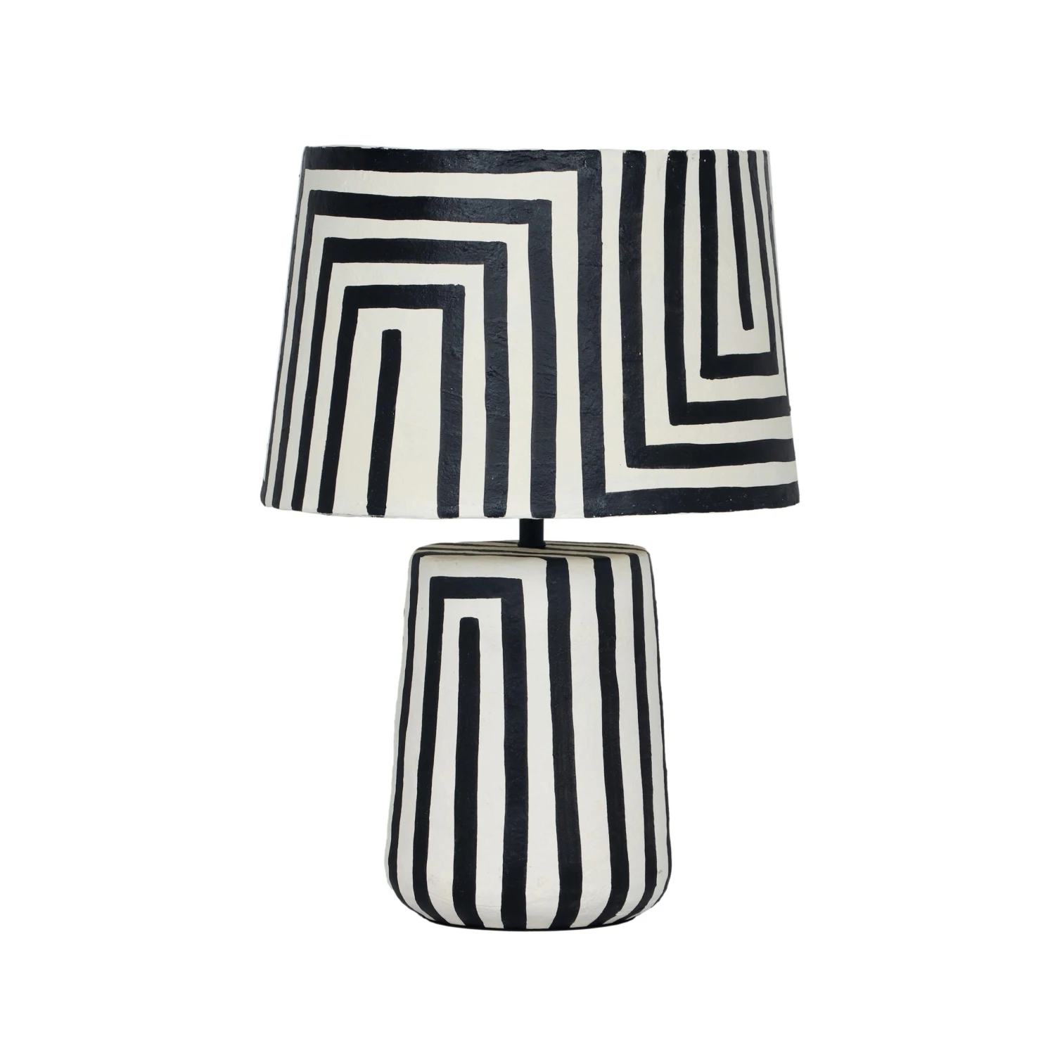 Looking for a lamp that goes anywhere? Introducing the Minori Black Striped Papier Mache Table Lamp, where graphic design meets artisanal craftsmanship. The lamp features a bold black and white striped pattern, creating a visually striking appeal. With its textured Papier Mache construction, this lamp adds a touch of artistry to your space, offering a versatile and stylish lighting solution that effortlessly complements various decor styles.