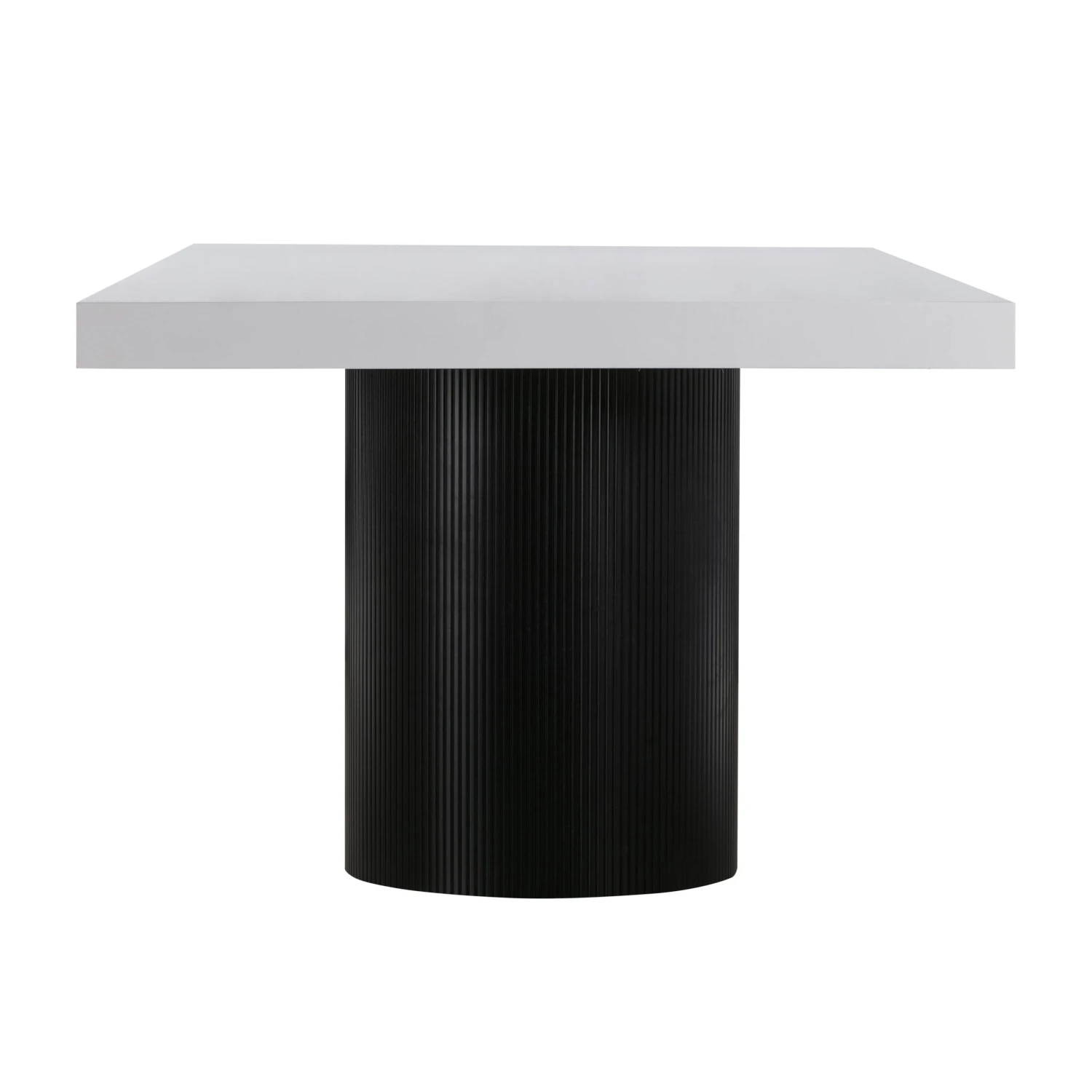 The clean-cut simplicity of the Nova Table with its statement conical legs, makes it the perfect bold yet versatile piece to elevate your dining experience. Featuring a glossy white lacquer top contrasted with 2 beautifully crafted black pedestal legs, this two-toned minimalistic table will undeniably be an accessory to any dining room.