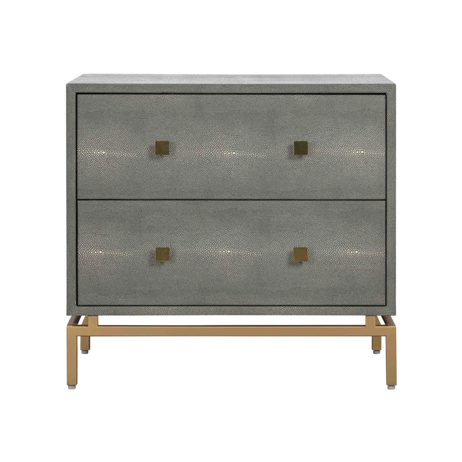 Attention to detail is perfectly displayed with the Pesce Shagreen collection. Everything from its textured shagreen finish, dramatic brass legs and handles, to the drawers finished in cherry wood come together beautifully to provide elegance and contemporary style to your space.