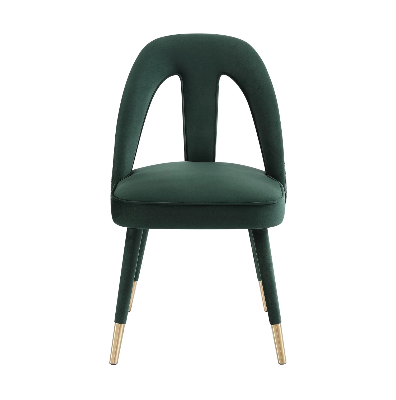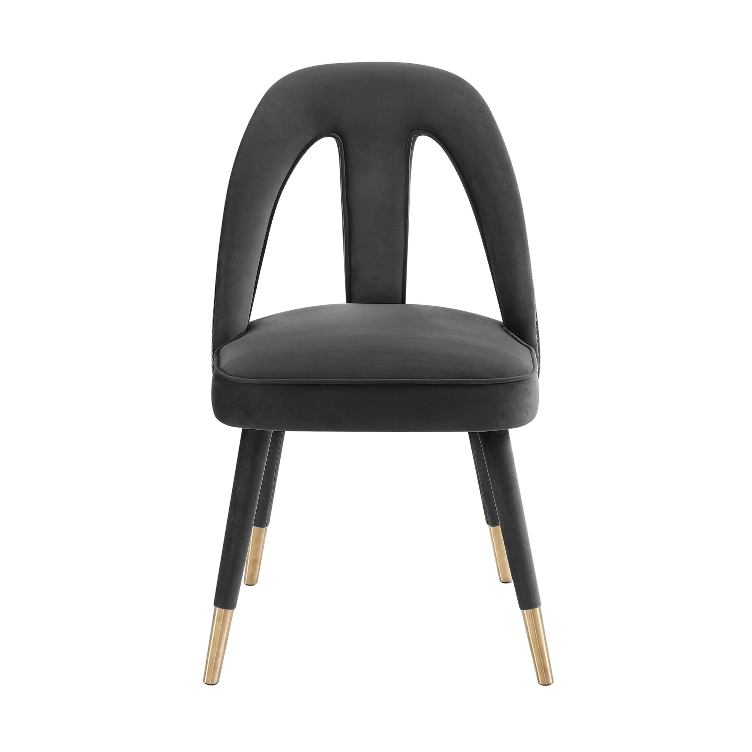Elevate your dining experience to a brand new level with the stunning Petra chairs. Its fully upholstered frame, nailhead trim and gold-tipped legs complement each other beautifully and its high-density foam padding offers outstanding comfort and support.