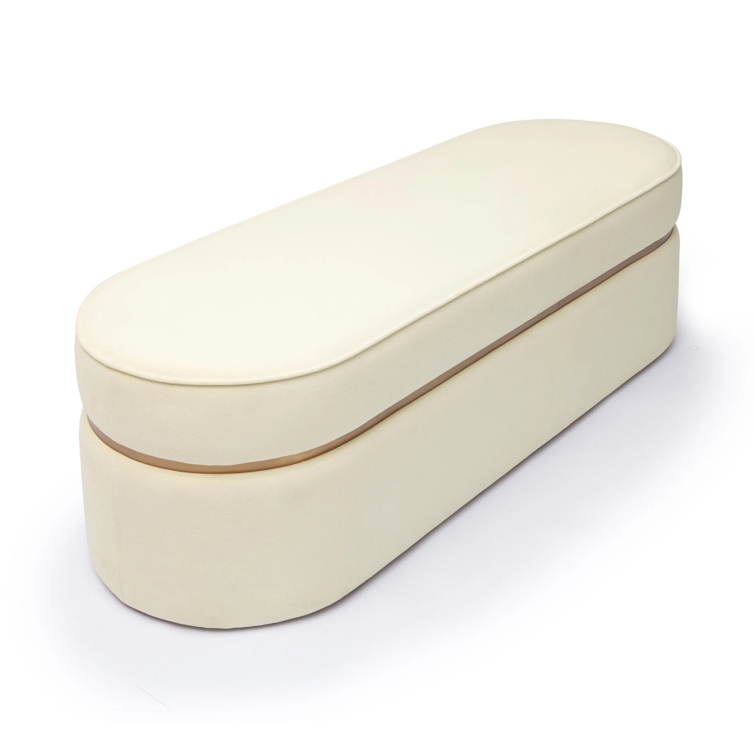Indulge in the ultimate blend of luxury and comfort with the Pomp Velvet Bench, available in cream or honey, featuring high-density foam on top for a relaxing seating experience. A thin, gold stainless steel strip runs gracefully down the middle, adding an art deco touch that exudes understated glamour. Elevate any room’s aesthetic with this timeless piece that’s so in vogue right now.