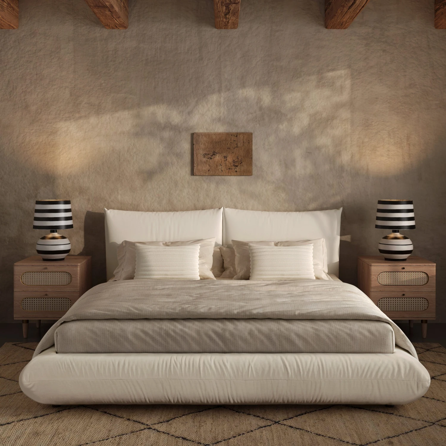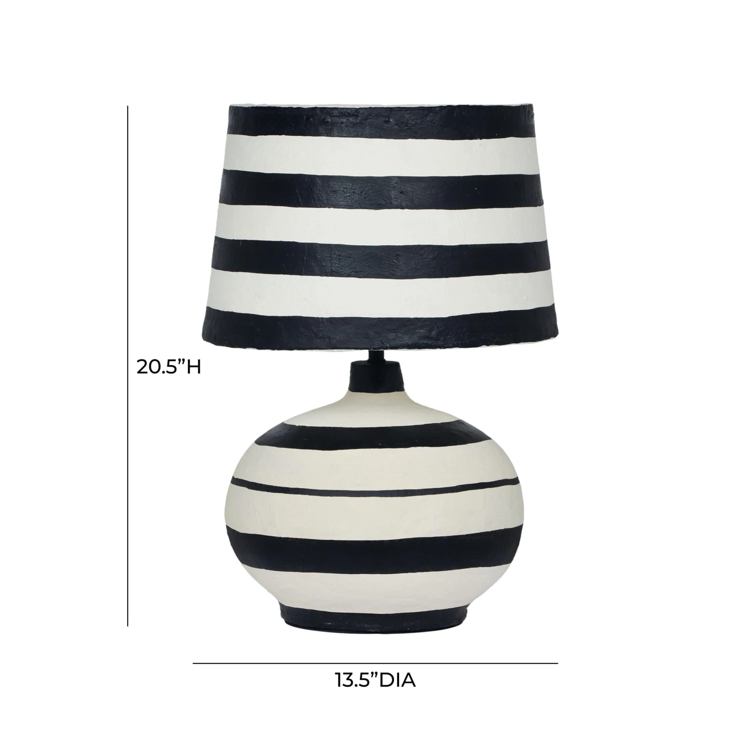 Introducing the Positano Striped Papier Mache Table Lamp, available in striking black or bold blue. Crafted with innovative Papier Mache construction, this lamp boasts a very on-trend and textural design, while the bold stripes make a striking statement. Elevate any space with this bold addition, combining contemporary aesthetics with timeless craftsmanship.