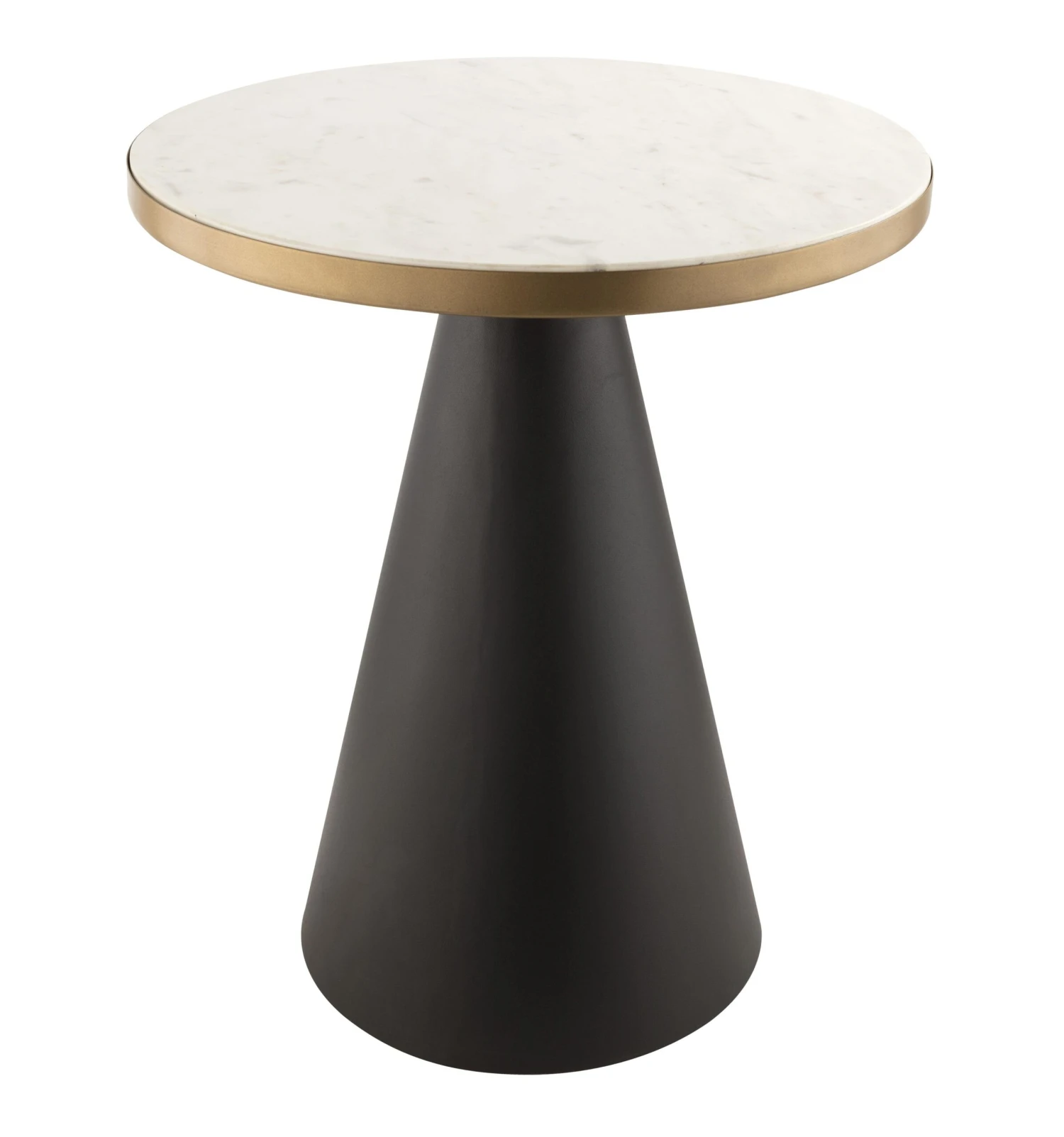 Brimming with refinement, this eye-catching design shows off an elevated white marble top elegantly bordered in gold and anchored to a black conical base. Available in two sizes, the Richard collection is sure to enhance any space its placed. As this is a handmade product, slight variations are to be expected and may result in small gaps between the marble and frame.