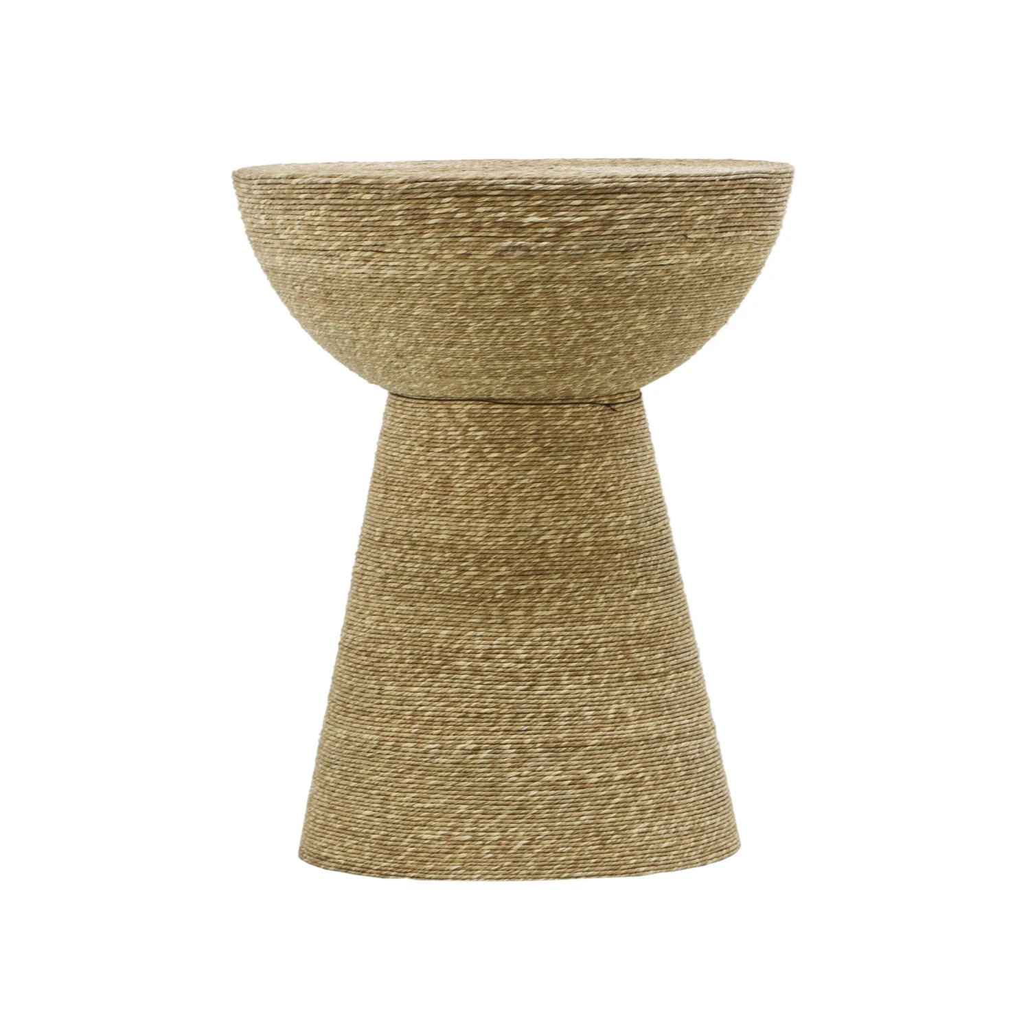Handmade with care, the Wren Striped Side Table showcases beautiful natural craftsmanship! The table base is made of iron wrapped in cotton and natural grass to create an organic and nautical touch in your space. The compact size makes it the perfect side table in your living room, or a small bedside table, or the perfect spot to place a decor piece or plant.